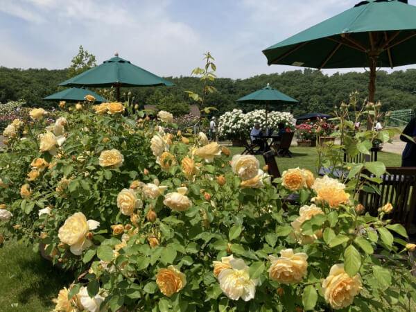 そのほか、国際香りのばら新品種コンクール受賞作品を植栽している『国際香りのばら新品種コンクール受賞作品』と国際香りのばら新品種コンクールの『試作場』のエリアがあり、いずれのエリアも素晴らしいばらを堪能いただけます♬
